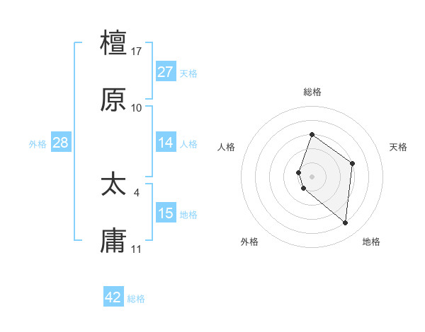 檀原 太庸さんの天格は27画の3点!