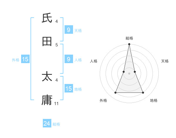氏田 太庸さんを姓名の画数から五運を鑑定