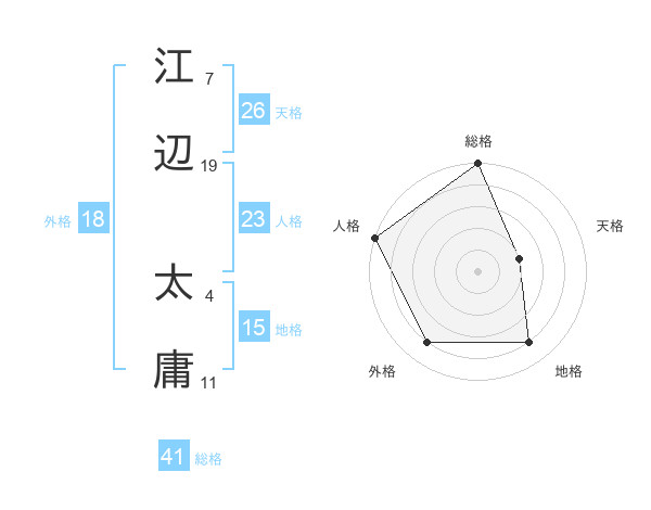 江辺 太庸さんを姓名の画数から五運を鑑定