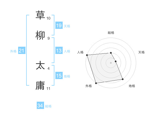 草柳 太庸さんの外格は21画の5点!
