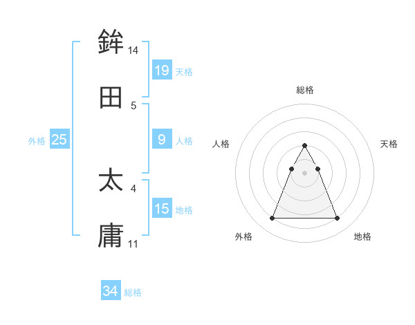 鉾田 太庸さんの天格は19画の1点!