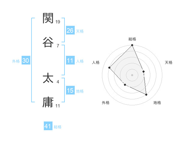 関谷 太庸さんの総格は41画の5点!