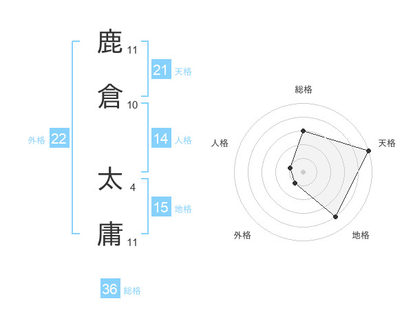 鹿倉 太庸さんの天格は21画の5点!
