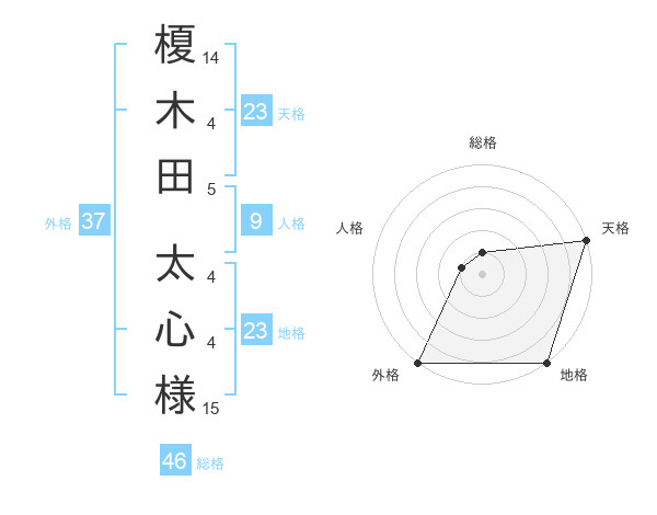 榎木田 太心様さんを姓名の画数から五運を鑑定