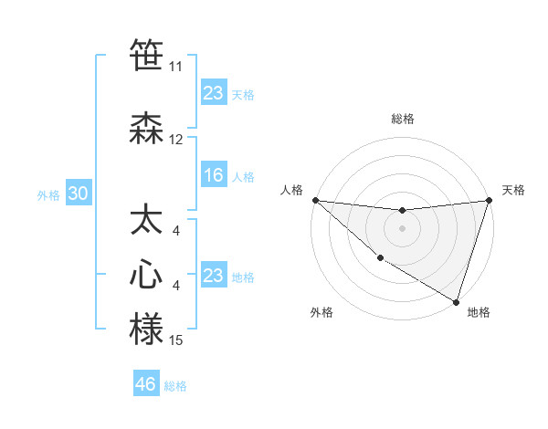 笹森 太心様さんを姓名の画数から五運を鑑定