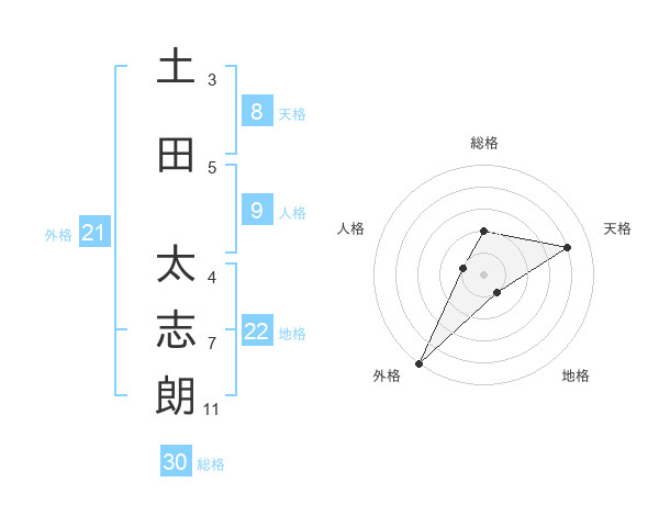 土田 太志朗さんを姓名の画数から五運を鑑定