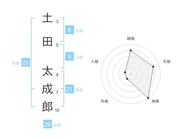 土田 太成郎さんを姓名の画数から五運を鑑定