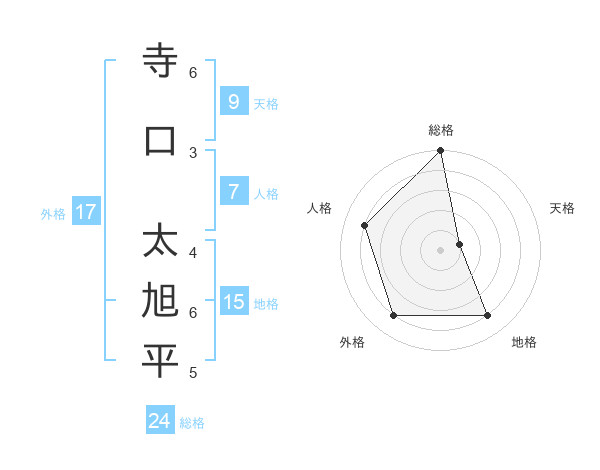 寺口 太旭平さんの総格は24画の5点!
