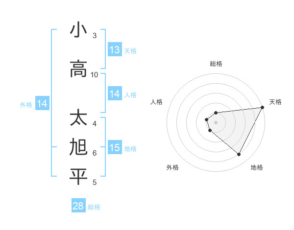 小高 太旭平さんの天格は13画の5点!
