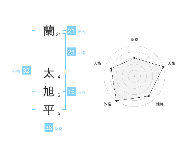 蘭 太旭平さんの天格は21画の5点!
