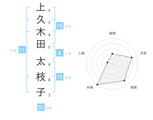 上久木田 太枝子さんを姓名の画数から五運を鑑定