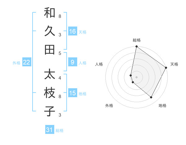 和久田 太枝子さんを姓名の画数から五運を鑑定
