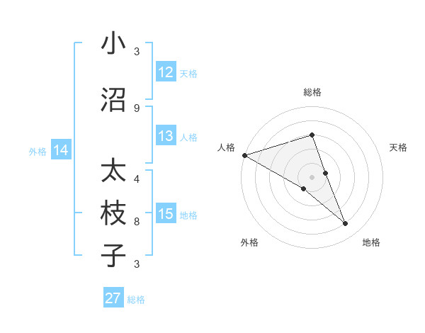 小沼 太枝子さんを姓名の画数から五運を鑑定