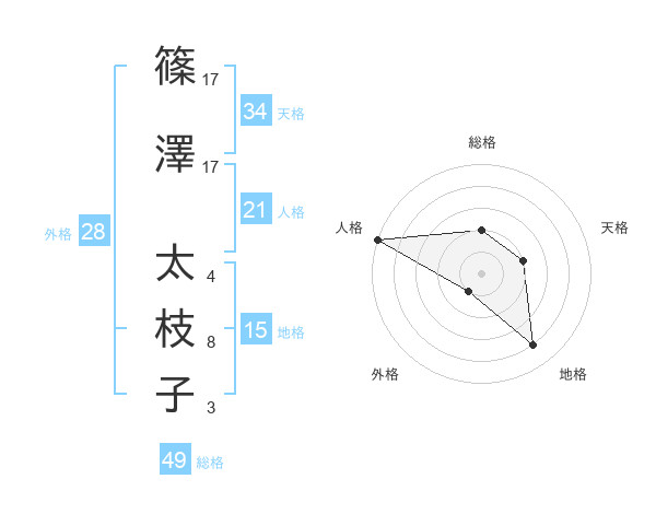篠澤 太枝子さんの天格は34画の2点!