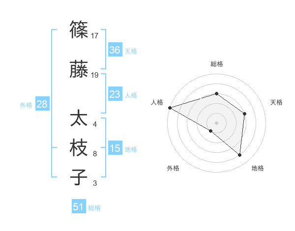 篠藤 太枝子さんの総格は51画の3点!