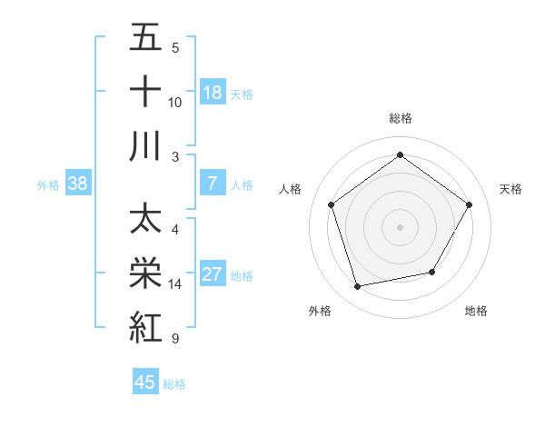 五十川 太栄紅さんを姓名の画数から五運を鑑定