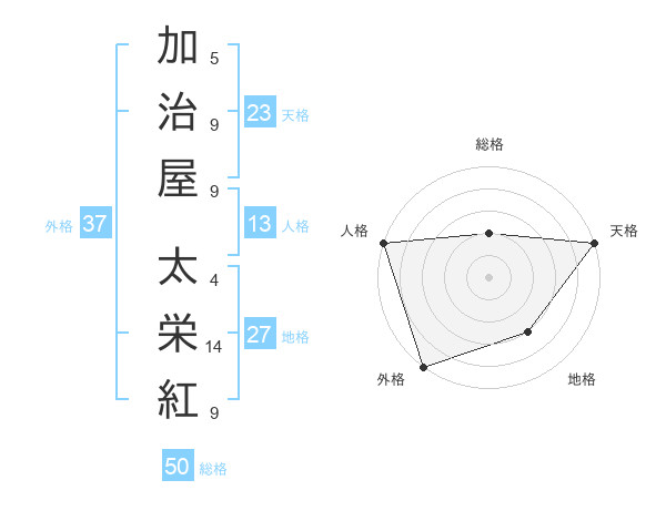 加治屋 太栄紅さんを姓名の画数から五運を鑑定