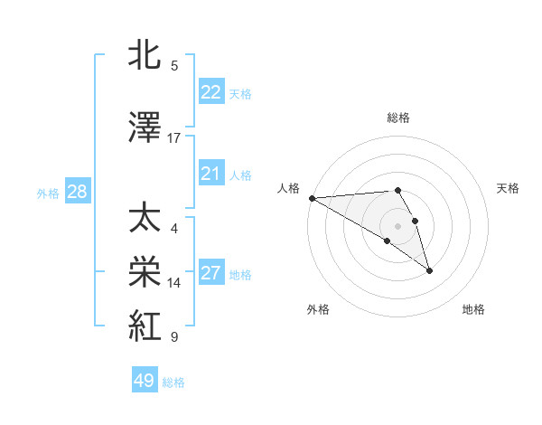 北澤 太栄紅さんを姓名の画数から五運を鑑定