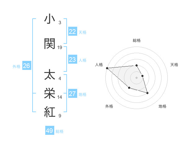 小関 太栄紅さんを姓名の画数から五運を鑑定
