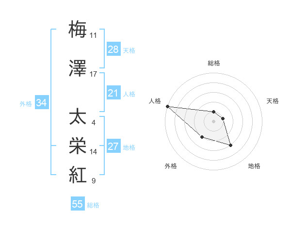 梅澤 太栄紅さんの天格は28画の1点!