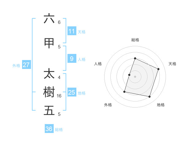 六甲 太樹五さんを姓名の画数から五運を鑑定