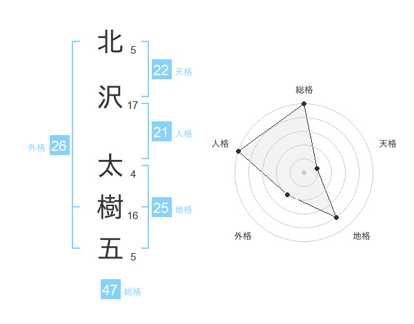 北沢 太樹五さんを姓名の画数から五運を鑑定