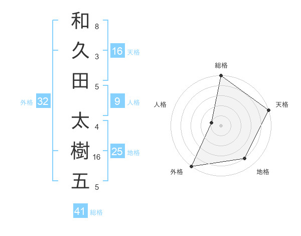 和久田 太樹五さんを姓名の画数から五運を鑑定