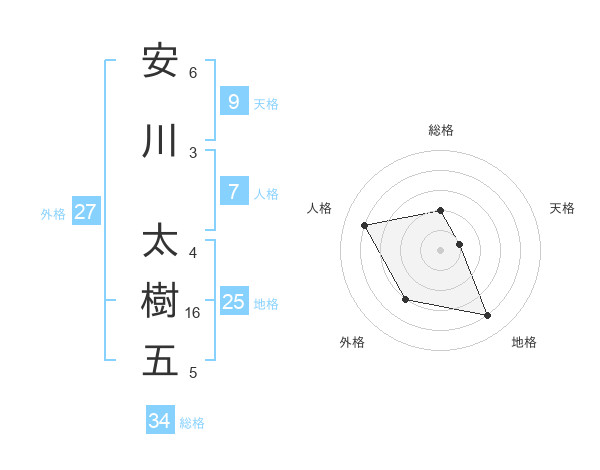 安川 太樹五さんを姓名の画数から五運を鑑定