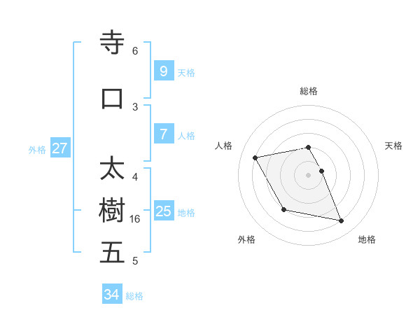寺口 太樹五さんの総格は34画の2点!