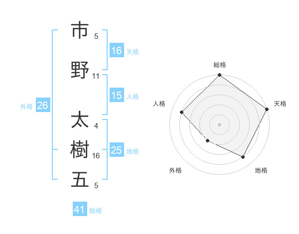 市野 太樹五さんを姓名の画数から五運を鑑定