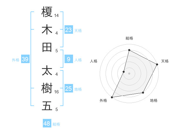 榎木田 太樹五さんの外格は39画の5点!