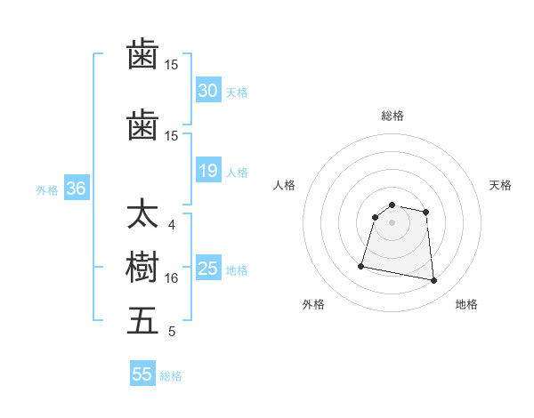 歯歯 太樹五さんの総格は55画の1点!