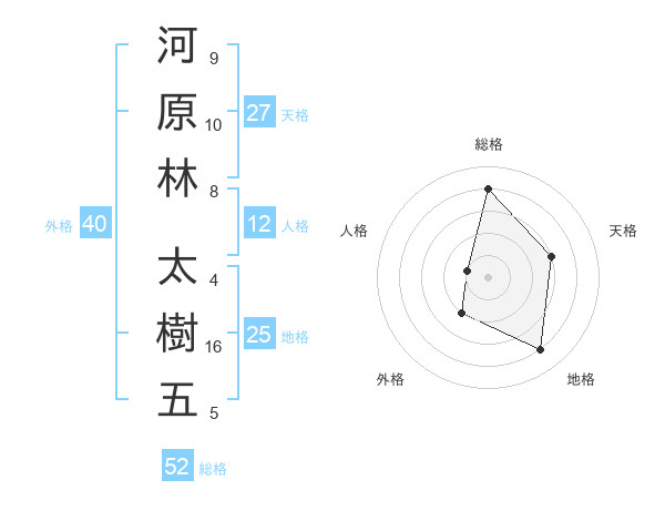 河原林 太樹五さんの総格は52画の4点