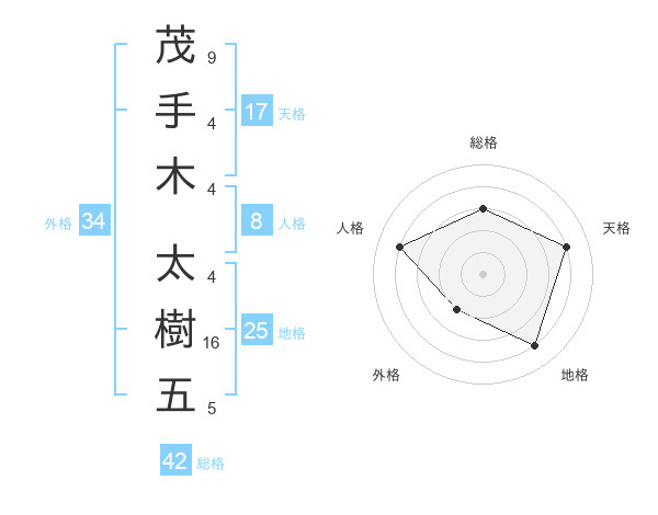 茂手木 太樹五さんを姓名の画数から五運を鑑定