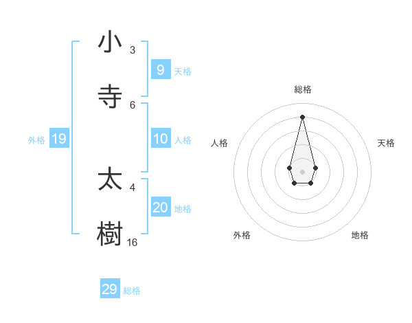 小寺 太樹さんを姓名の画数から五運を鑑定
