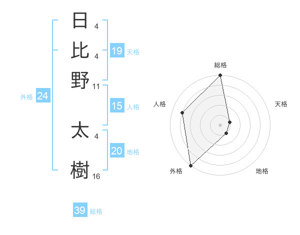 日比野 太樹さんを姓名の画数から五運を鑑定