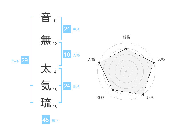 音無 太気琉さんを姓名の画数から五運を鑑定
