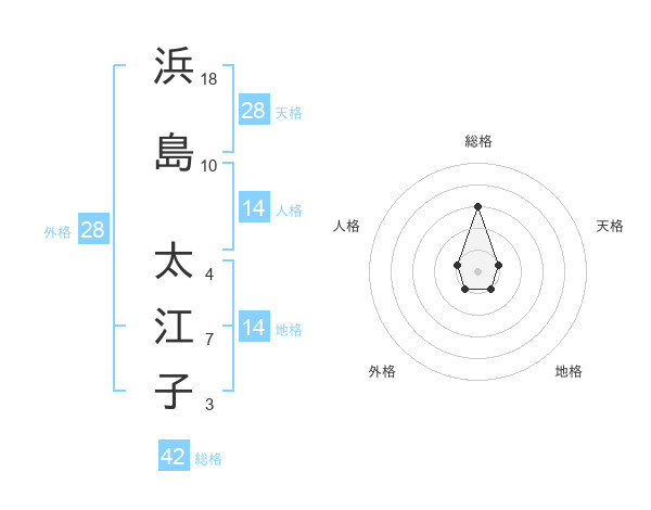浜島 太江子さんの総格は42画の3点!