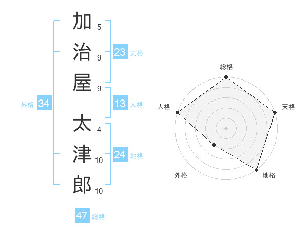 加治屋 太津郎さんを姓名の画数から五運を鑑定
