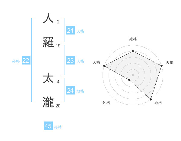 人羅 太瀧さんの総格は45画の4点!