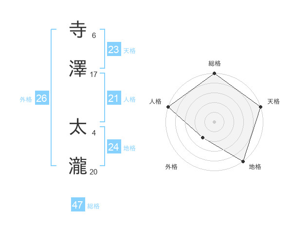 寺澤 太瀧さんの総格は47画の5点!