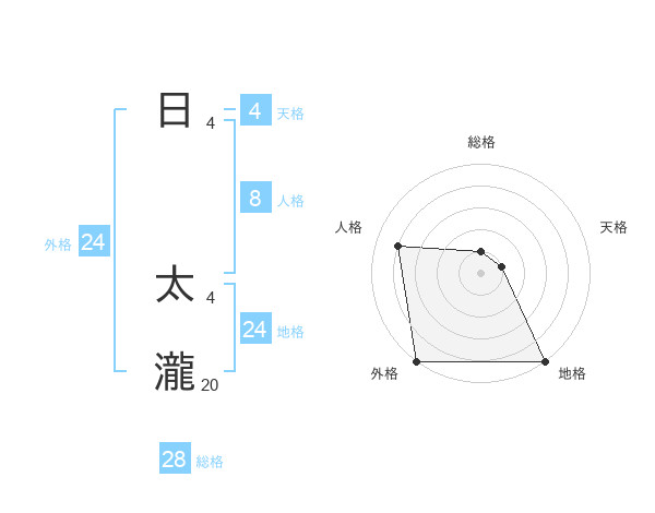日 太瀧さんの外格は24画の5点!
