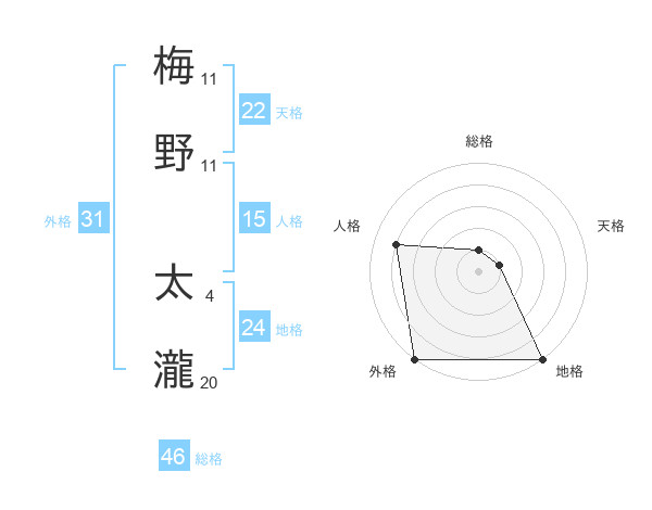 梅野 太瀧さんの地格は24画の5点!