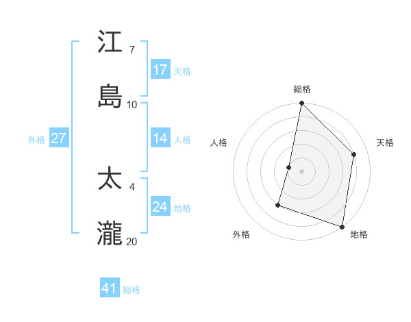 江島 太瀧さんの総格は41画の5点!