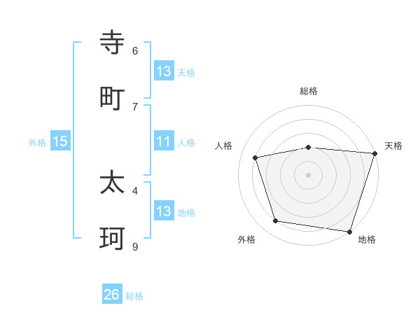 寺町 太珂さんの総格は26画の2点!