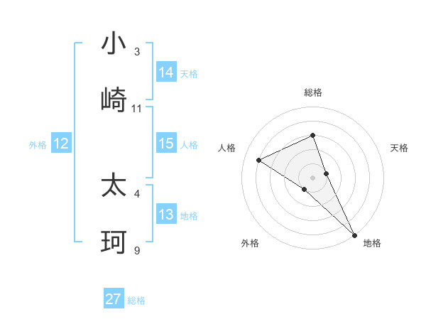 小崎 太珂さんを姓名の画数から五運を鑑定
