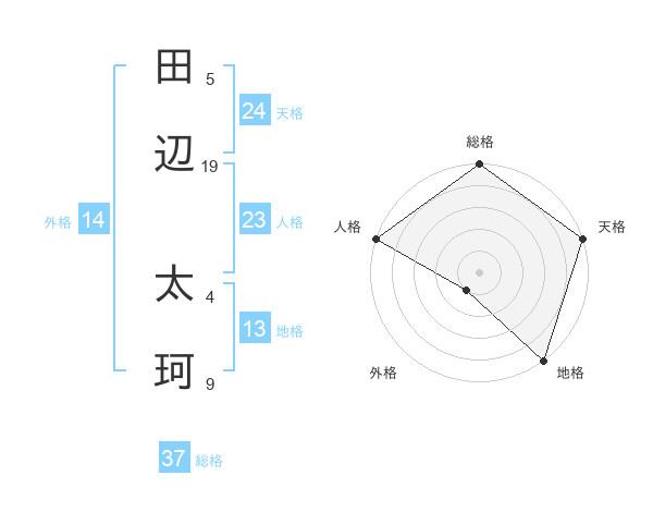 田辺 太珂さんを姓名の画数から五運を鑑定