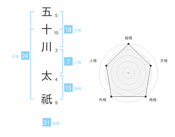 五十川 太祇さんを姓名の画数から五運を鑑定