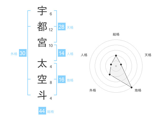 宇都宮 太空斗さんの総格は44画の2点!