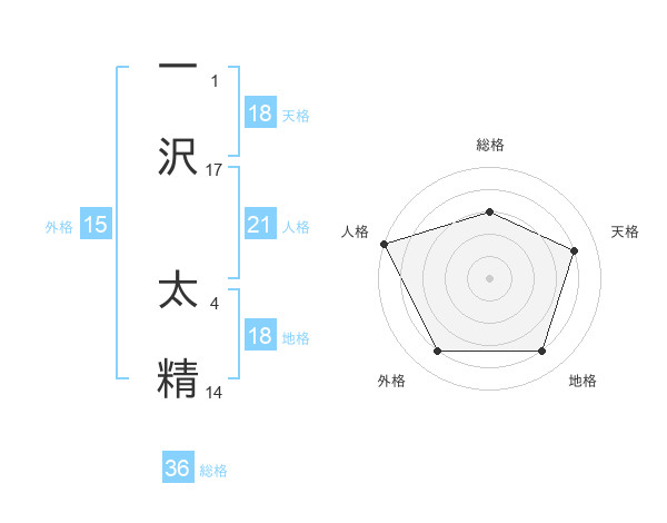 一沢 太精さんの天格は18画の4点!